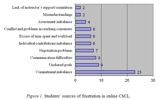 In der International Review of Research in Open and Distance Learning (IRRODL) haben Neus Capdeferro und Margarida Romero eine Studie vorgestellt, die sich der Frage widmet, durch „welche Faktoren Lernende in kooperativen Szenarien frustriert“ werden. Abgesehen davon, dass ich es ja immer mutig und fruchtbar finde, wenn sich auch die Forschung dezidiert negativen Erfahrungen und Phänomenen widmet, können die Ergebnisse m.E. bedenkenswerte Impulse liefern. Spitzenreiter in den Antworten ist die „Commitment imbalance“, was ich in diesem Kontext frei mit „ungleich verteiltem Einsatz“ bzw. „Beteiligung“ im weiteren Sinne, übersetzen würde. Das Ergebnis mag nicht überraschen, deckt es sich doch mit einer Reihe meiner alltagsweltlichen E-Teaching Erfahrungen – der eigenen wie den zugetragenen.
